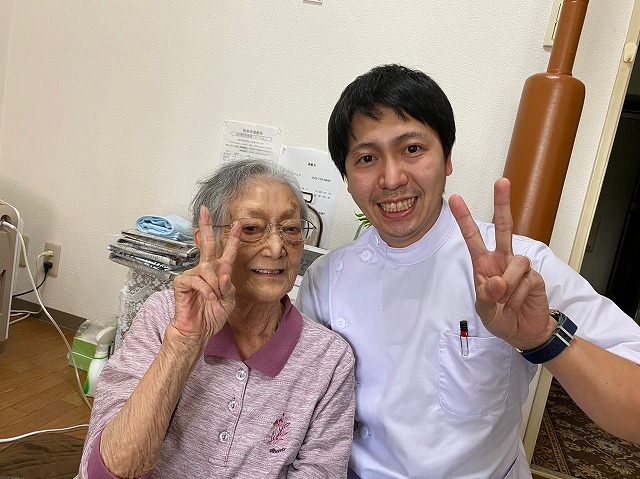 現在は訪問看護やリハビリを利用しつつ、藤本鍼灸整骨院での訪問鍼灸を受けています。 長年の麻痺から特に左肩が固まり、動きが悪くなっていたのが、少しずつ改善がみられてきました。